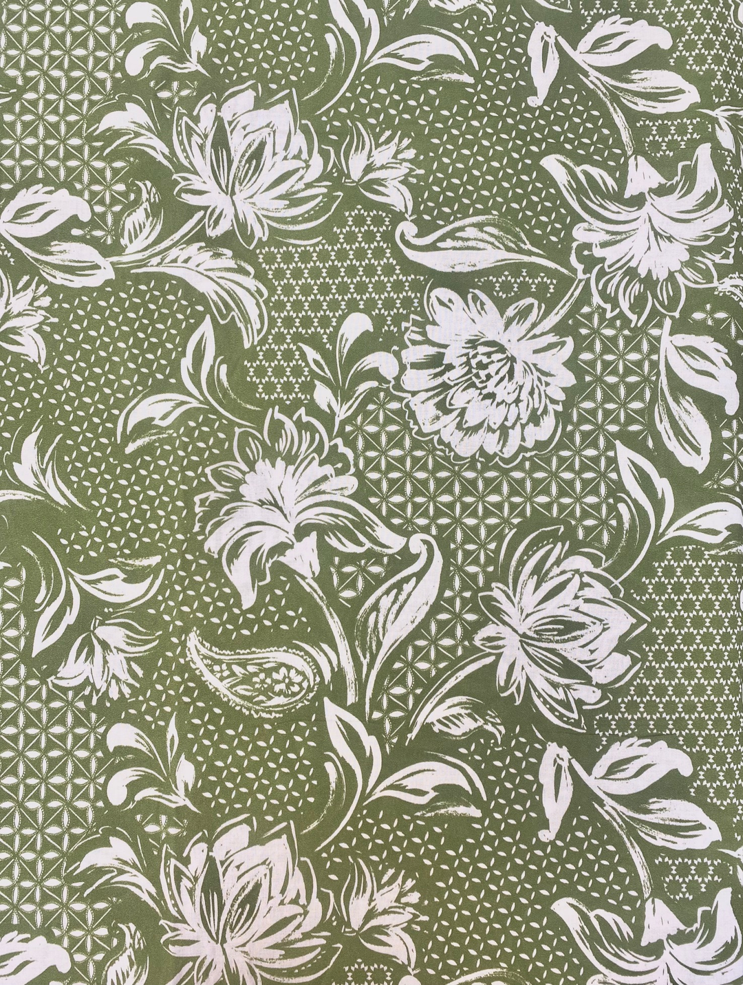 Printed Cotton Voile Fabric – Khaki Floral Geo | 100% Cotton