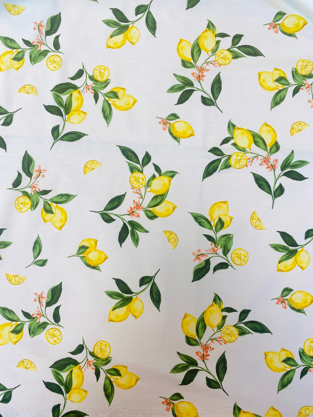 Printed Cotton Poplin Fabric – Lemon & Floral Ivory | 100% Cotton