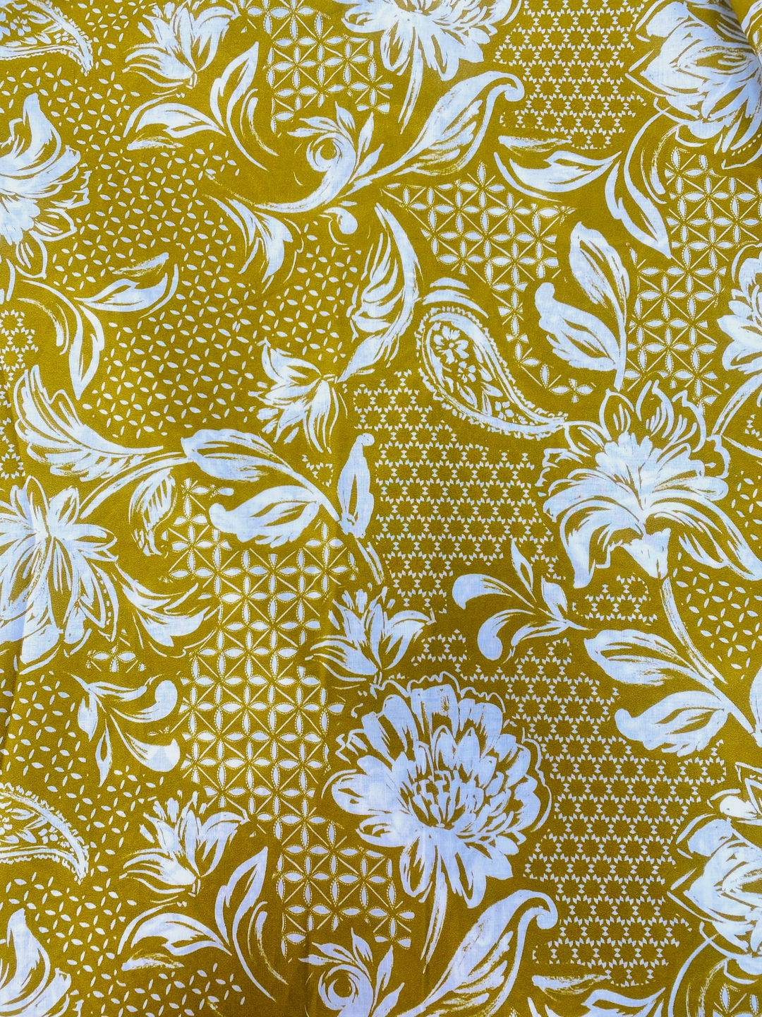 Printed Cotton Voile Fabric – Mustard Floral Geo | 100% Cotton
