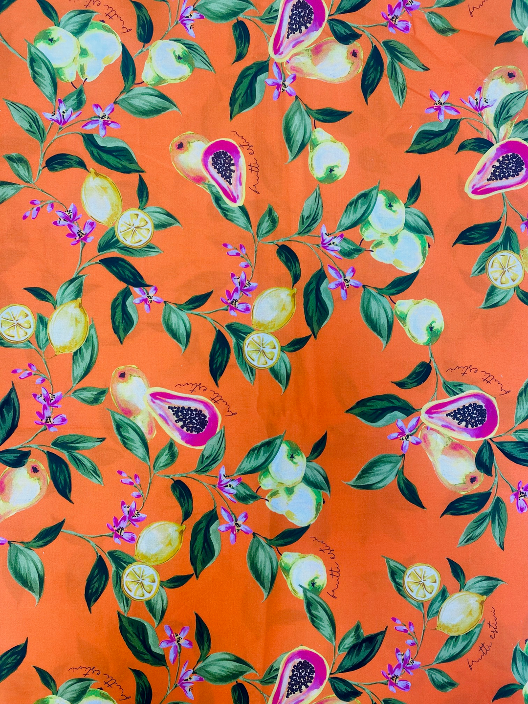 Printed Cotton Poplin Fabric – Orange Lemon Floral | 100% Cotton
